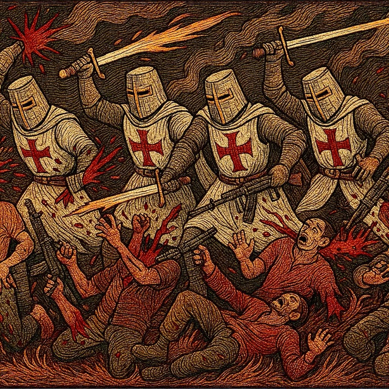 By dawn, every blasphemer was dead. The streets lay littered with broken bodies, cut down by weapons no living hand had wielded. Machine guns lay scattered in the dirt, useless against vengeance long sworn.