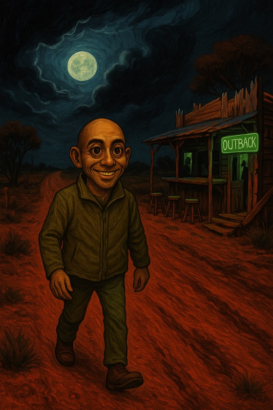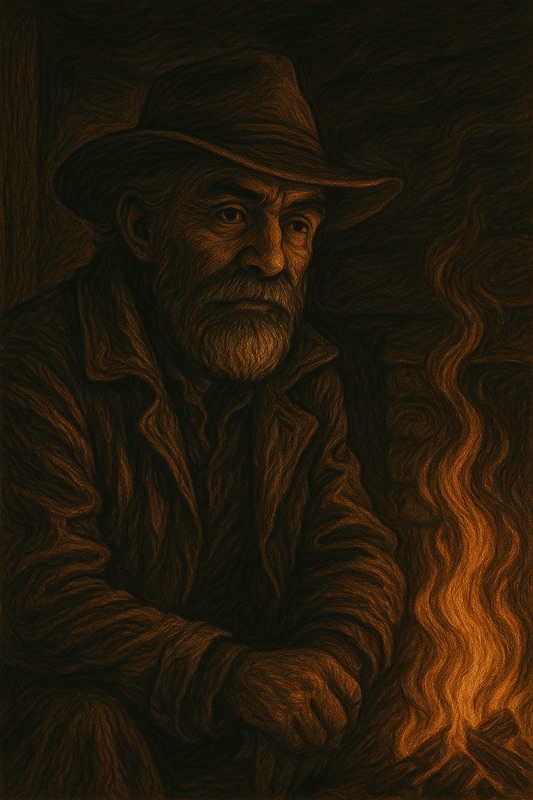 The firelight brushed his face, though the shadows seemed to slip strangely across it, like smoke drifting through. Yet he carried the air of an old bushman—easygoing, with that familiar she’ll be rightcomfort only country folk seem to have.