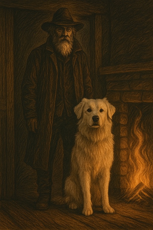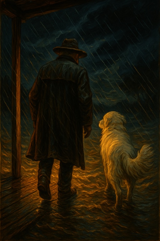 “They say Old Bill lived here once,” he began. “Storm came through, much like tonight. River rose quick. Bill went door to door, helped everyone to higher ground. Saved a lot of lives that night. But he came back for his dog, Gazzer. A large white Maremma. The river took ’em both. Found Bill downstream days later. Never found Gazzer. Those Maremma are pretty elusive.”